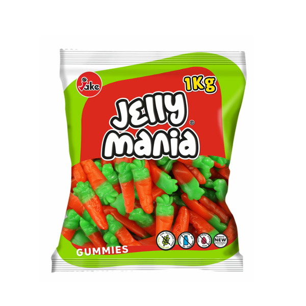 Glukosesirup, vann, sukker, maisstivelse, gelatin, surhetsmiddel: sitronsyre, vegetabilsk olje (inneholder palme og/eller kokos), beleggmiddel: karnaubavoks, smakstilsetninger, surhetsregulerende middel: natriumsitrat, fargestoffer: E102, E129, E133, E171 .