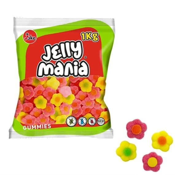 Glukosesirup, vann, sukker, maisstivelse, gelatin, syrer: sitronsyre, eplesyre, vegetabilsk olje (inneholder palme- og kokosolje, glassmiddel: karnaubavoks, smakstilsetninger, surhetsregulerende middel: natriumsitrat, farge: E100, E120 , E133,