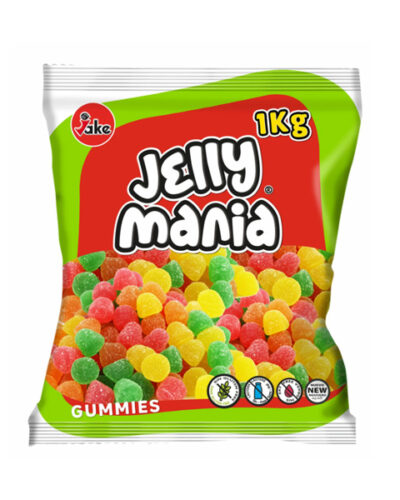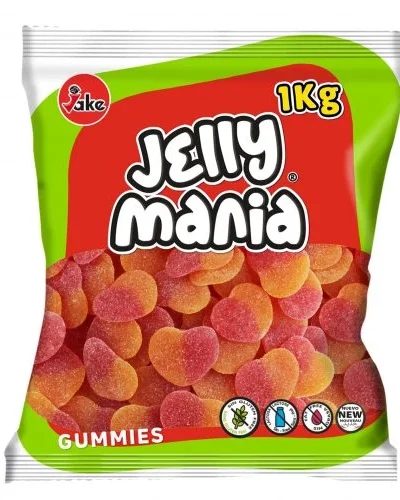 Sukker, glukosesirup, vann, gelatin, surhetsregulerende middel (e270, e296, e334, e350), aroma, konsentrat fra spirulina og safrantistel, svart gulrotjuicekonsentrat, druekonsentrat, fargestoff (e100, e160c).